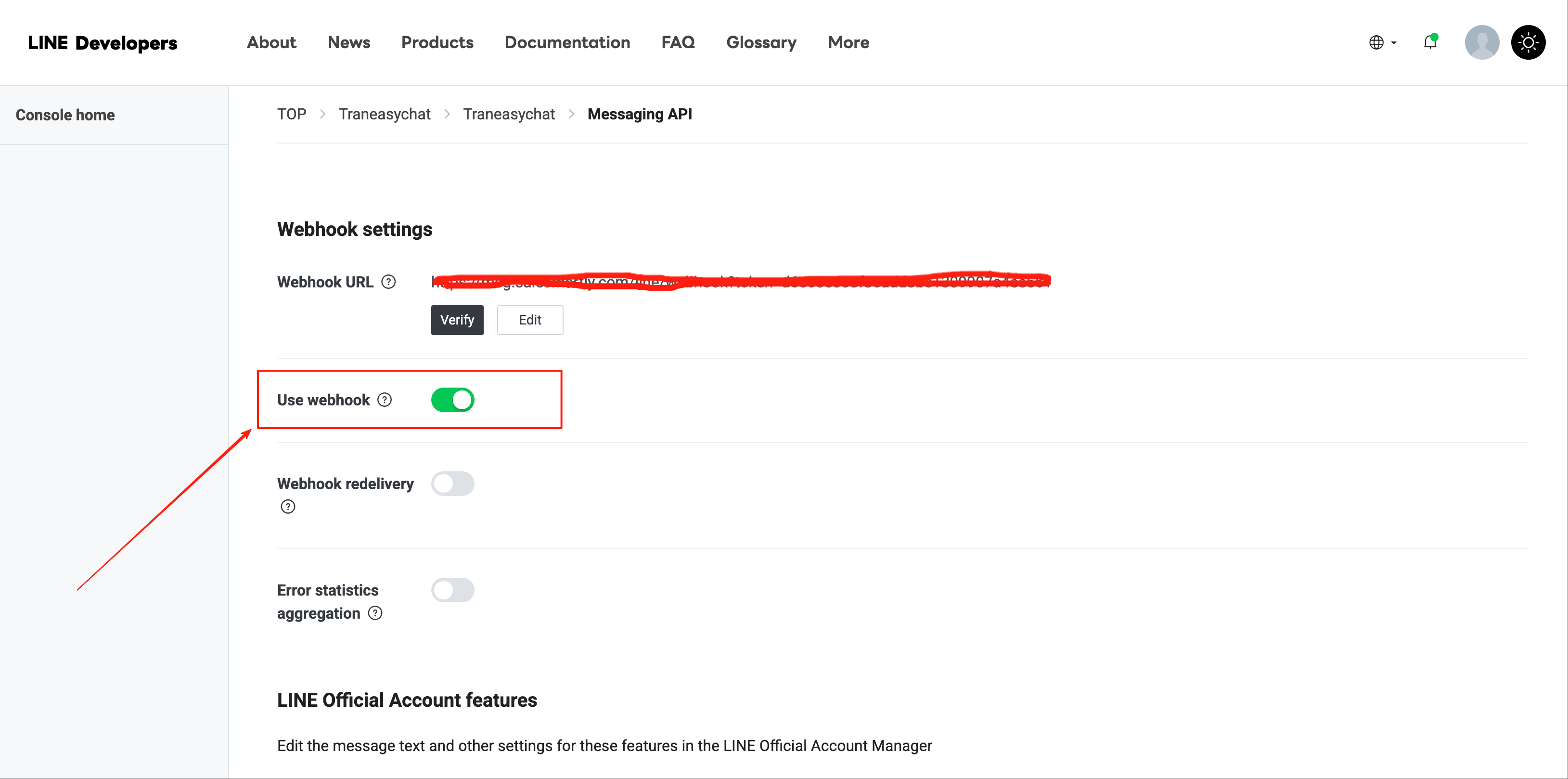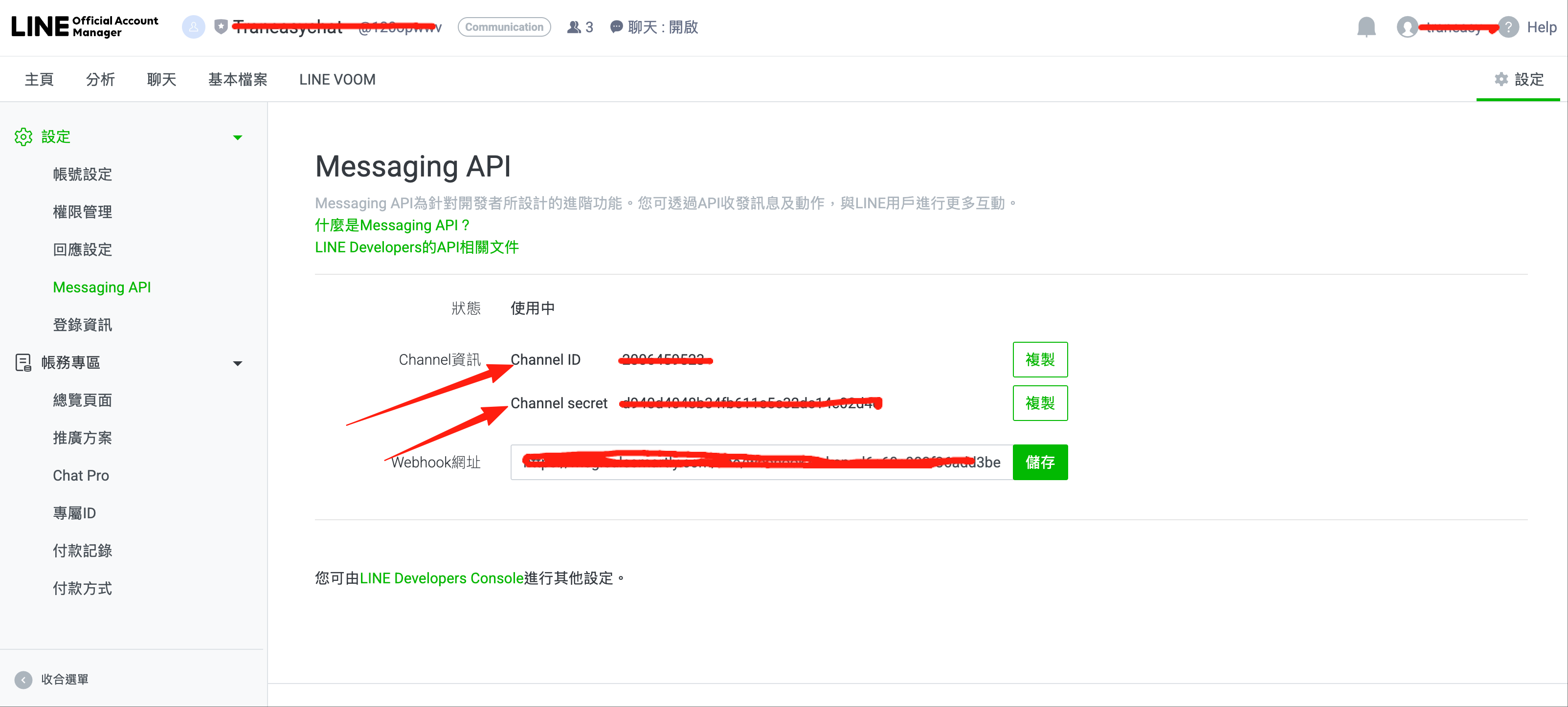 回到 LINE 官方帐号管理页,并填入 Webhook URL