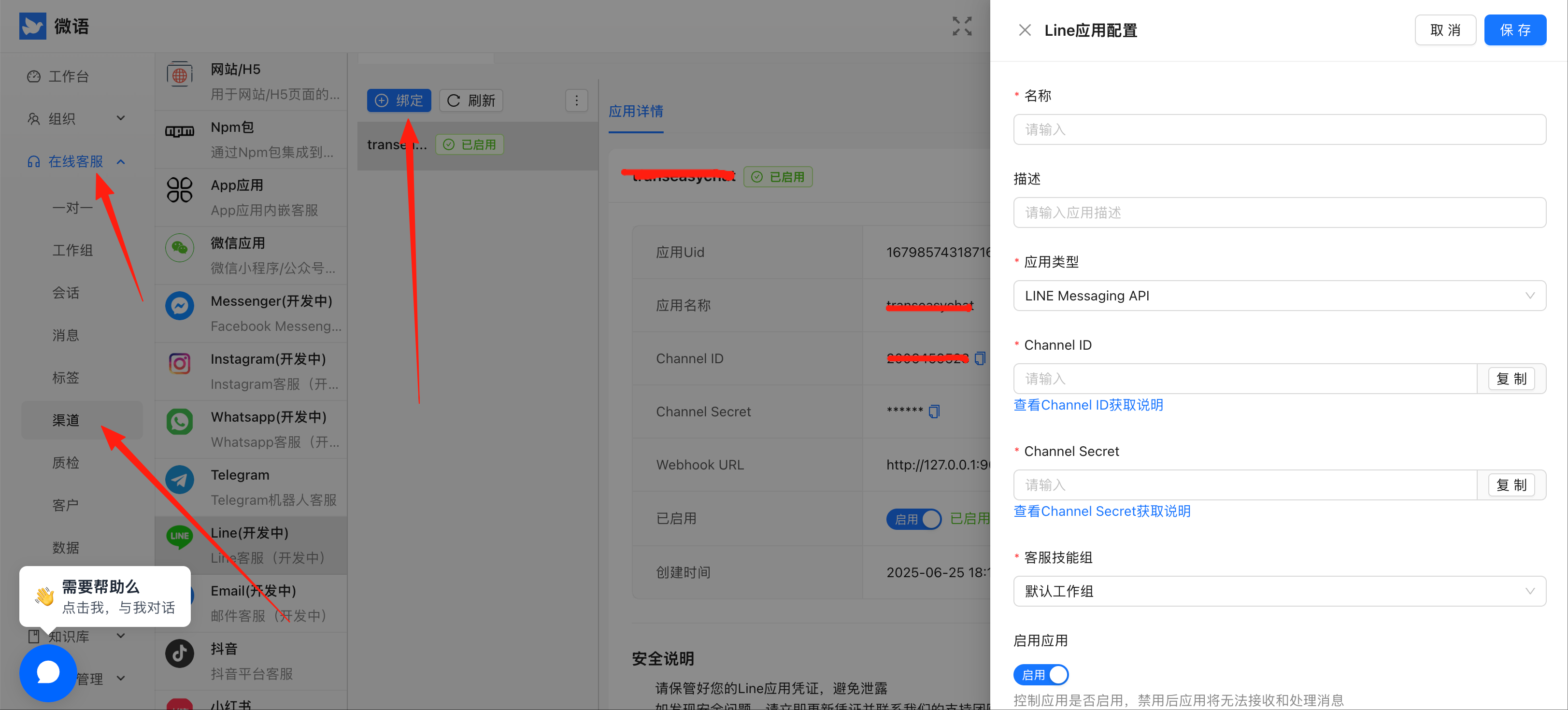 集成LINE渠道,可以将LINE的聊天记录同步到微语平台,让企业能够通过微语后台实时查看并回复用户的询问,管理LINE官方帐号,并利用LINE的社交性和实时性与用户进行即时沟通,提供统一的多渠道客服。